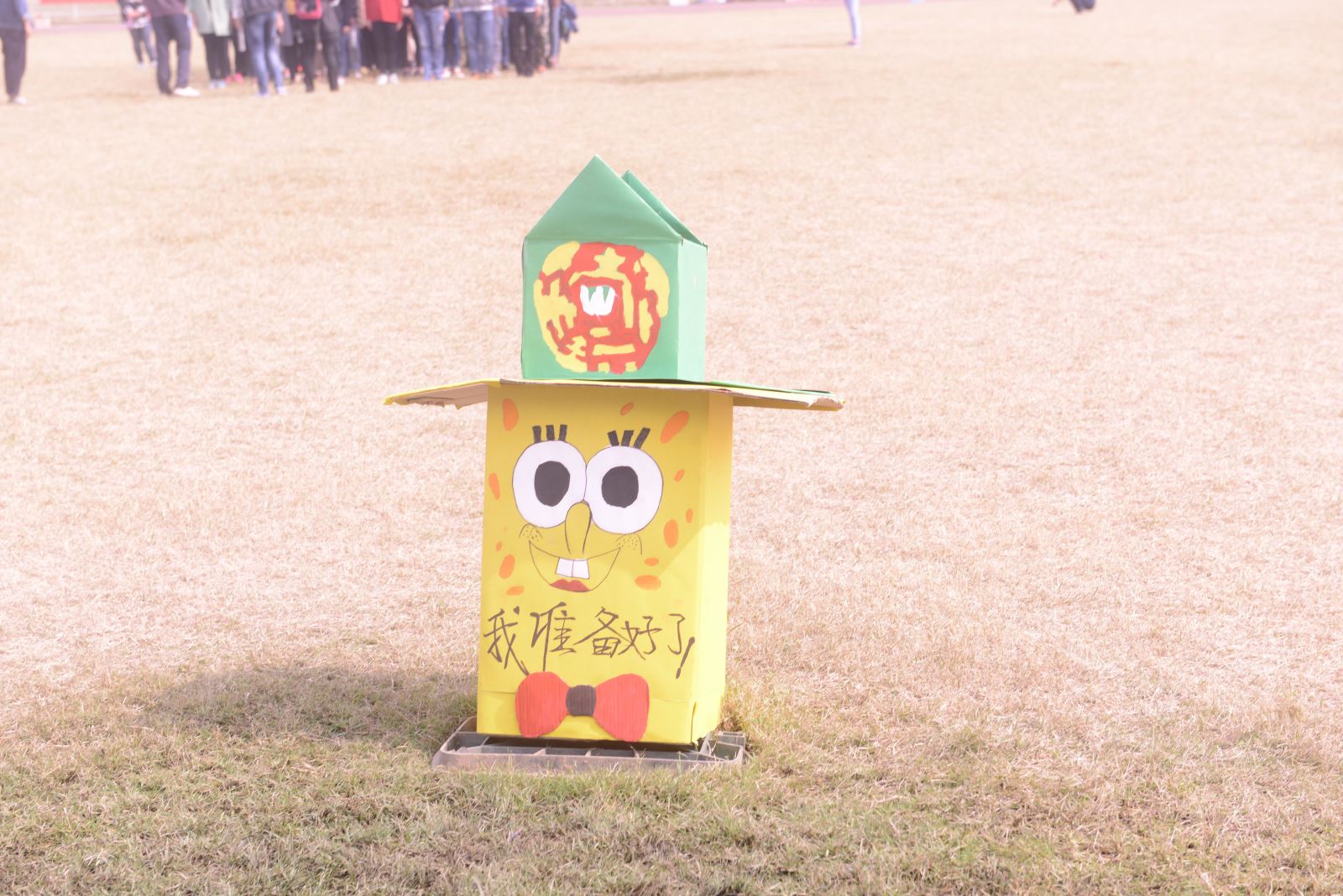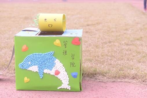 操场跑道边的垃圾桶,是他们经过一周辛勤的努力而做成的。