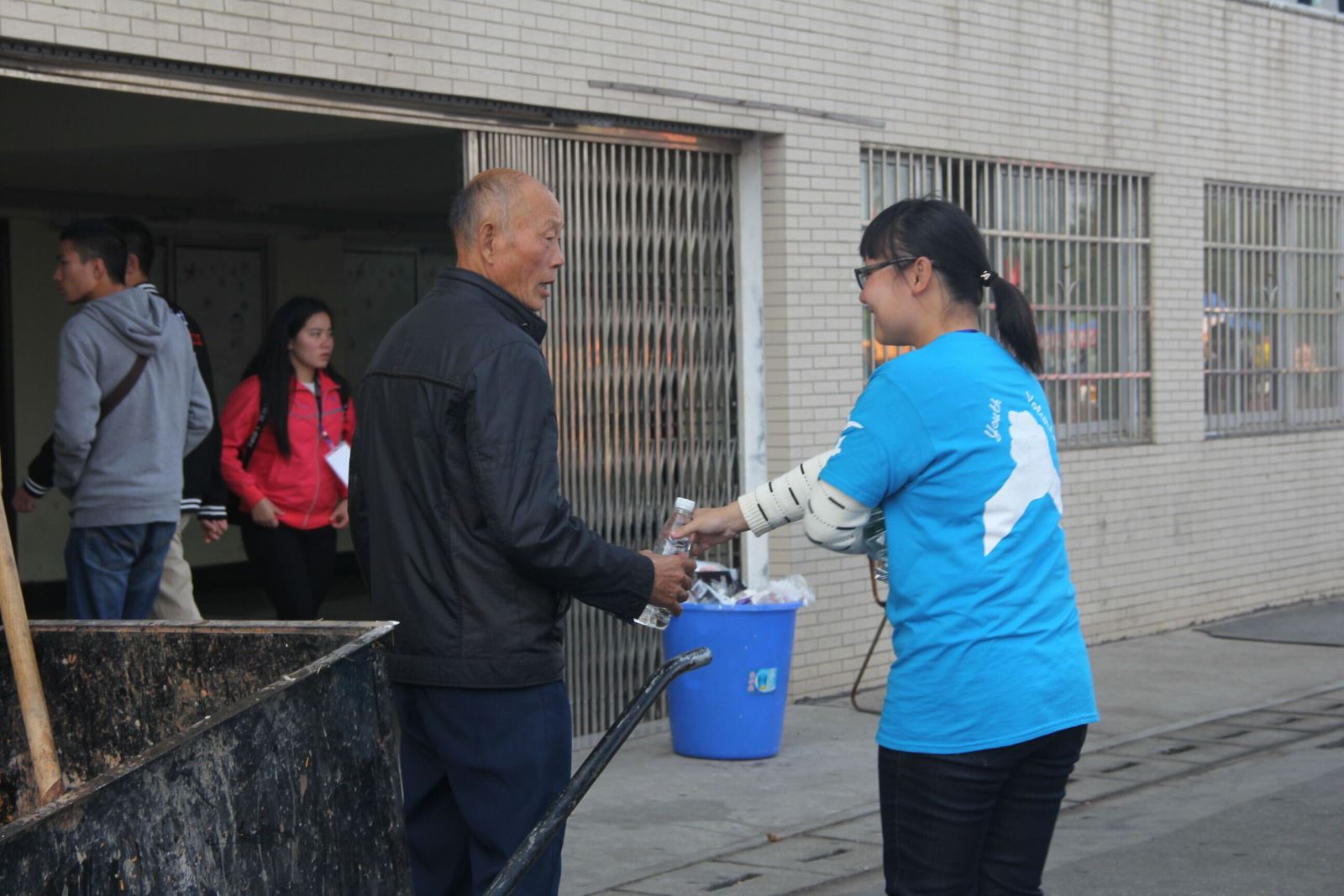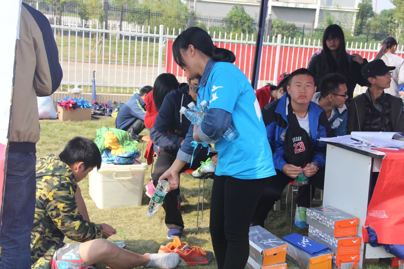 他们到各个服务点,为运动员提供他们需要的帮助和给裁判送水。