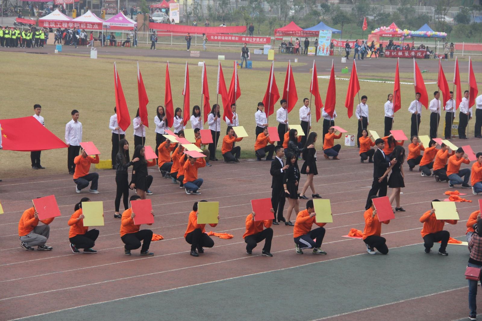 11月1日,校运会如期开展。你们神采飞扬!即使身上薄薄的衣衫并不能帮你们抵御寒风,但你们的热情与信心让呼啸的寒风变得微不足道,好像这寒风正是为了让你们手中的旗帜扬得更高而来。