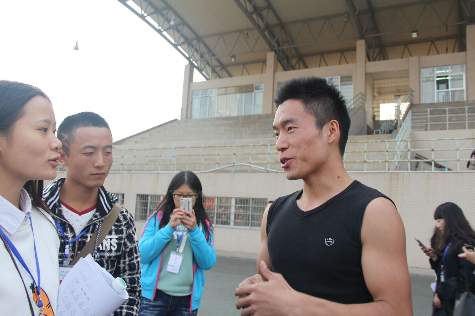 采访的过程中我们了解到英煌同学是专升本的同学,并且是体育生出身,此次参加运动会是为了感受一下真正的老员工活,同时也锻炼锻炼自己。而且周英煌同学在此前也多次参加过此类的竞赛,并且多次斩获第一!所以说他完全不会怯场!