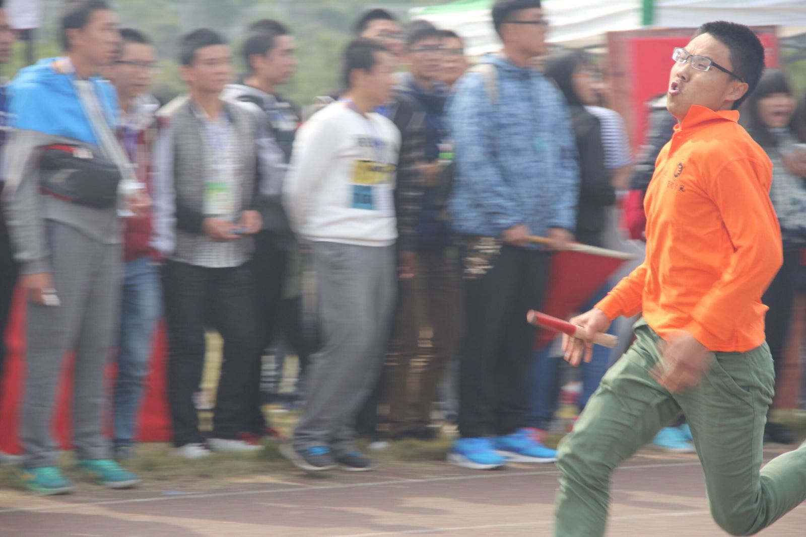 15号的陈贞顺便慢慢地往前赶超了不少的运动员,原来他之前是在以一种缓慢却平稳的速度在保存自己的体力,长跑不比短跑,尽管腿脚已经发软,呼吸早已急促,他依旧没有停下他的脚步,坚持不懈地跑向了终点。终于,在大多数运动员相继跑过终点之后,陈贞顺咬着牙到达了终点。当所有人都为他松了一口气的时候,他突然脚一软朝前倒去,今年唯一一个报名参加了运动会的大四员工,他是坚持不懈的代名词,也是勇敢的化身,不管他取得的成绩如何,他永远都是学弟学妹们的榜样。不抛弃,不放弃,这是运动的精神,也是他的信条。让我们永远为他加油,为他呐喊吧!