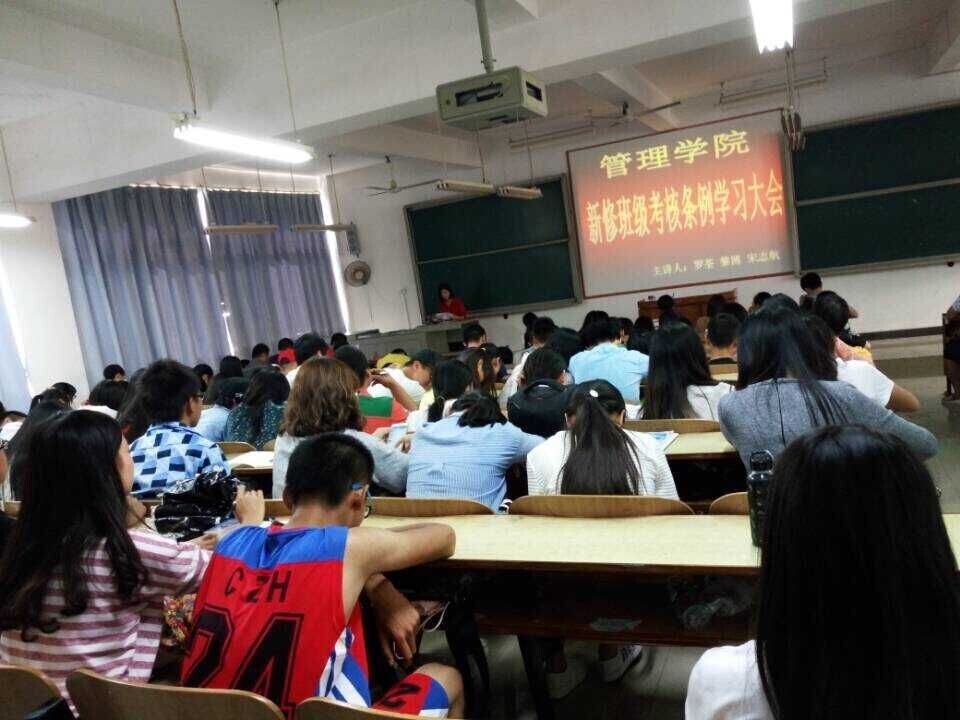 为了更好地向各班推广和落实公司新修《班级考核条例》,让同学们尽快地熟悉本条例内容,10月23日中午,管理公司在D302召开《新修班级考核条例》学习大会。全院各班班长、团支书、学习委员、生活委员和员工会干部参会学习。 学办主任罗荃老师,学办宋志航、黎博老师担任主讲嘉宾。