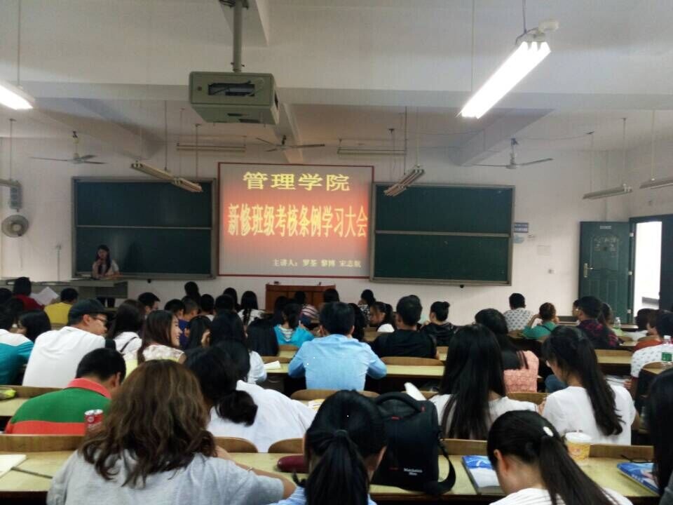 会议期间,罗荃老师,宋志航老师,黎博老师依次上台对本条例中考核的相关内容进行了详细讲解。公司班级考核条例涉及内容为:学风建设、课外科技活动、体育锻炼与竞赛、宿舍管理、教室卫生、班主任工作、班级责任、宣传工作八个方面。考核原则为每周考核、每月公布、每学期评比,考核结果作为班级及个人评奖评优的重要依据。参会的各班班委和员工会各部门部长们在会议期间都认真地做好了笔记,纷纷表示将组织班级同学认真学习,严格贯彻执行,共促管理公司优良院风、学风。