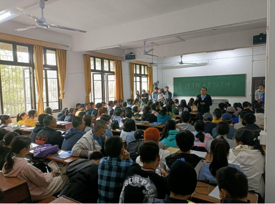 10月26日,beats365官方网站管理公司召开了本学期第四次月讲评会议。大一员工在南校区三教303、304教室,大二、大三双数学号员工和大四各班班长、团支书在主校区D101教室分别参与会议讲评。本次月讲评会议由学办辅导员谭超、罗蒙、周艺、黎博、陈祎婷、包海燕、陈景楠对工商管理、旅游管理、人力资源管理、物流管理、市场营销、电子商务、会计学、大数据管理与应用八个专业进行讲评。