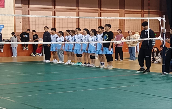 本次比赛共有来自12个院的排球队伍,现场观众的尖叫声、欢呼声凝聚成强大的力量,鼓舞着球员们奋力拼搏。