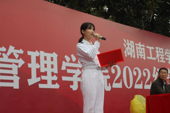 大会在庄严的国歌声中拉开序幕。“路漫漫其修远兮,吾将上下而求索。在新的起点上同学们应志存高远,不断追求新知、真知、真理,积极进取,始终保持昂扬向上的精神状态。”管理公司经理徐运保发表讲话,他寄语管理公司学子要有朝气、志气、才气、勇气,在人生的道路上,志存高远、追求卓越;刻苦努力、锲而不舍;大胆探索、敢为人先,努力成为堪担民族复兴重任的时代新人。