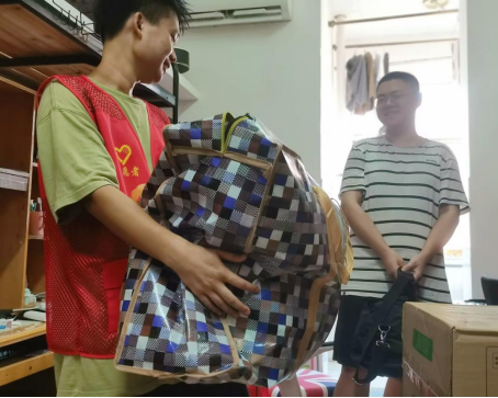 烈日当头,同学们逐渐体力不支,搬迁困难加大,大数据管理2101班李敏、市场营销2201石玉豪、市场营销2201曹洋等多名志愿者积极伸出援助之手,尽管已经汗流浃背,仍然洋溢着满足的笑容,“蓝丝带”联盟负责人李敏表示:“老师平日里教导我们团结协作是任何时代、任何场合都不会过时的精神,我为自己能切实帮助到同学而感到由衷地开心自豪。”