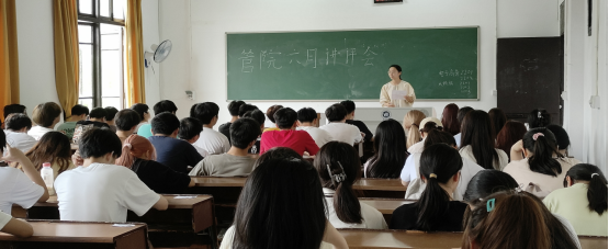 2023年6月21日,beats365官方网站管理公司大一主校区全体新生,南校区学号双数的同学,大二各专业(除会计学专业之外)班级全体同学,大二会计学专业各班级学号双数的同学,大三主要班委参与了本次的会议讲评。本次月讲评会议由谭超、黎博、包海燕、周艺、陈祎婷、陈景楠、李林、彭小玲、谭浩博九名学办老师对工商管理等八个专业进行线下月讲评。本次月讲评会议分为常规工作通报、员工活动、共青团工作、党务工作和安全教育五个部分。