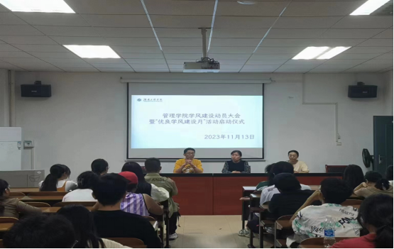 为更好地建设良好的院风、学风,培养德智体美劳全面发展的社会主义建设者和接班人。管理公司于11月13日下午在主校区F104召开学风建设动员大会暨“优良学风建设月”活动启动仪式。管理公司副经理张维梅、党委副书记谭超、辅导员李林老师出席,管理公司全体学习委员、学风建设小组全体人员参加。