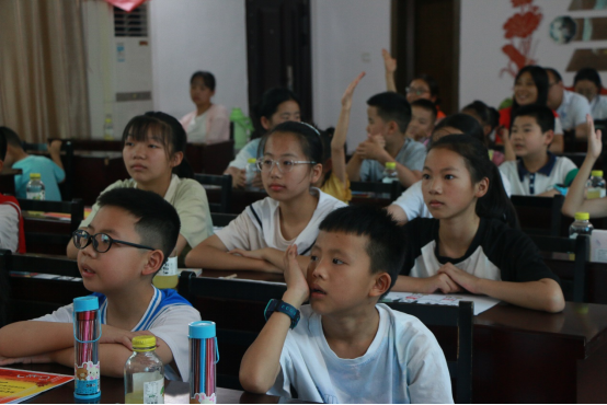 在张谷英村,实践团成员为村里留守儿童开设公益课堂,在课堂上讲解了非遗文化知识、防溺水安全常识、普通话发音技巧以及党史知识。实践团成员讲解深入浅出、活泼生动,课堂氛围热烈,获得了小朋友和村干部的一致好评。“哥哥姐姐,你们明年还来吗?明年再教我们念绕口令可以吗?”上课结束后小朋友们围着实践团成员不舍地问。