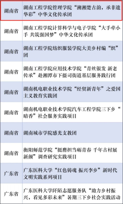 自2024年暑期“三下乡”社会实践活动启动以来,文化团深入民间进行探索调研,多措并举、精彩纷呈,团队行动赢得了红网、人民网、中国老员工网、新湖南、搜狐网等诸多权威媒体的广泛报道,社会影响深远。此次文化传承团在“千校千项”实践活动中获奖,是将传统文化精髓融入实践活动的成果,也是所有参与师生热情与才智的汇聚展现。