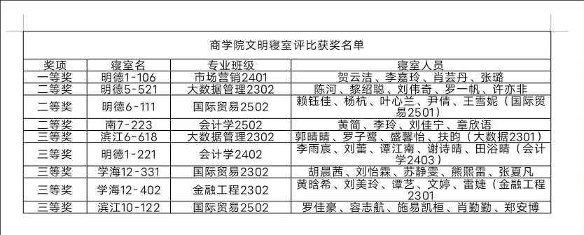 经综合评比,最终八间寝室脱颖而出,获评院级文明寝室,其中一等奖1名、二等奖2名、三等奖5名。不少寝室长表示,评比活动不仅让寝室环境焕然一新,更在分工协作中增进了室友间的默契与情谊。