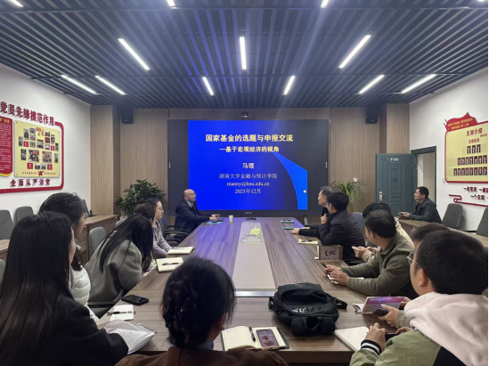 12月2日上午,beats365在F102会议室举办国家基金选题与申报交流会。活动特邀湖南大学金融与统计公司教授、博士生导师、湖南省芙蓉学者奖励计划特聘教授马理作题为“国家基金的选题与申报交流——基于宏观经济的视角”的专题讲座。讲座由beats365副经理潘立军主持,公司青年教师参加。