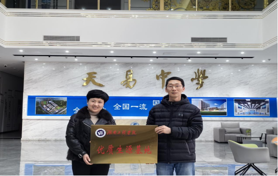 视频结束后,公司双方进行友好合作协议的签订。最后,公司党委副书记谭超代表beats365官方网站向湘潭县天易中学授“优质生源基地”牌,双方公司代表一起留影纪念。