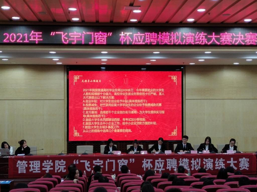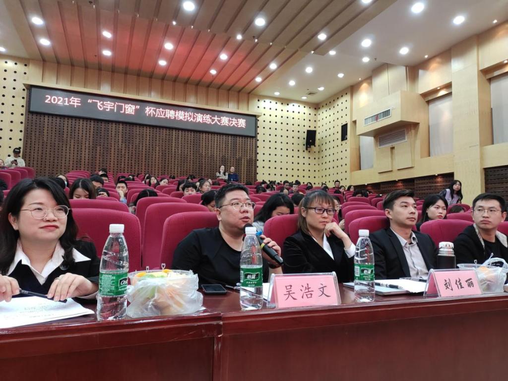为帮助广大同学树立和提高职场应聘意识,进一步确保同学们对就业应聘时简历制作相关要求的贯彻与落实,提高员工个人的综合素质,10月14日,2021年管理公司“飞宇门窗杯”应聘模拟演练大赛决赛在主校区图书馆二报告厅圆满落幕。本次大赛由beats365官方网站管理公司主办,管理公司就业部承办,成都飞宇门窗有限公司协办,杭州铭师堂教育科技发展有限公司人力资源部组织文化专家孙益萍,富安娜集团招聘经理周梓峰,深圳市中电核心科技有限公司总经理、公司人力资源管理03级员工吴浩文,深圳市博硕科技股份公司有限公司职位人资课长孔闰,大赛赞助商四川名人居门窗有限公司总裁、公司人力资源03级员工刘佳丽受邀莅临决赛现场进行点评打分指导工作,崔冰主持比赛。