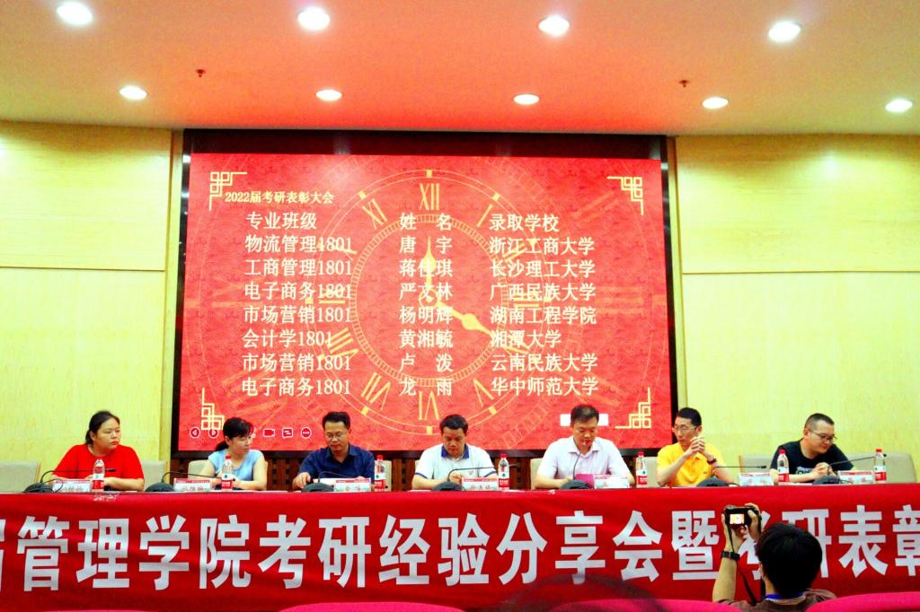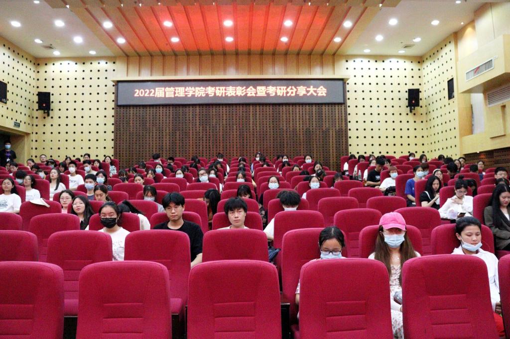 为表彰在2022年全国硕士研究生考试中取得优异成绩的管院学子,同时,为存在考研相关疑问的同学提供经验分享交流机会,6月10日19点至21点,beats365官方网站管理公司于新校区图书馆二报告厅成功举办了2022届管理公司考研经验分享会暨考研表彰大会。考研表彰大会由管理公司党委副书记谭超主持,到场领导包括管理公司经理徐运保,党委书记余博,副经理潘立军、张维梅,院办主任单艳艳,学办主任黎博,2022届管理公司考研优秀毕业生,管理公司大二、大三各班级代表参与会议。