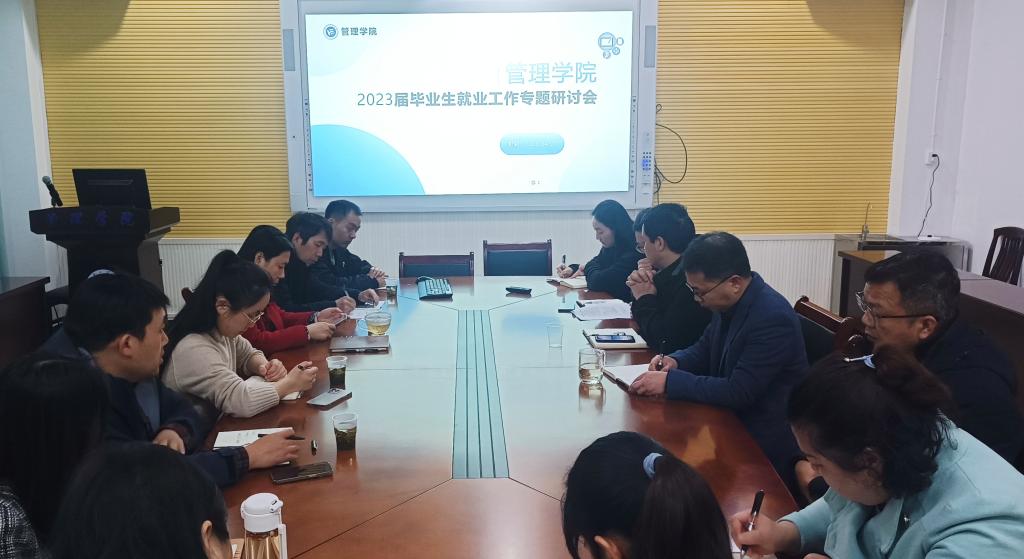 为贯彻落实《beats365官方网站“抢抓春招关键期 全力攻坚促就业”2023届毕业生促就业专项行动实施方案》,全力促进毕业生顺利就业、尽早就业,4月7日上午9点,管理公司在新校区F104室开展管理公司2023届毕业生就业工作专题研讨会。院领导、两办主任以及全体学办老师、各教研室主任参加此次会议。会议由经理徐运保主持。
