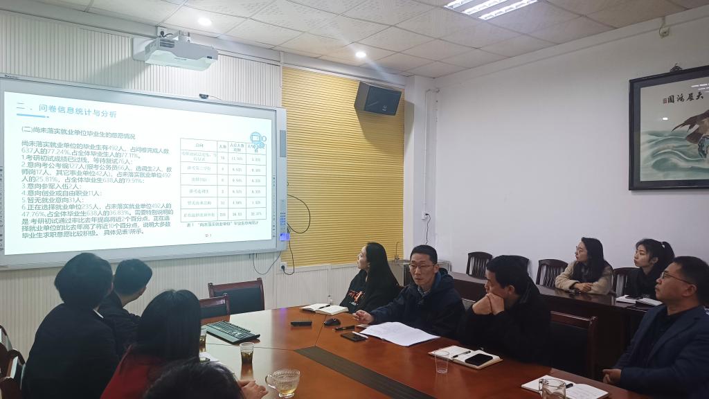 副经理张维梅强调,“公司就业工作成效事关公司人才培养质量,全院上下要协同配合,加强工作统筹,细化工作任务,保障毕业生高质量就业。学办辅导员、教研室老师要协同作战,形成合力,进一步开拓资源,保就业促发展。”
