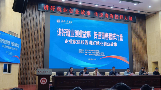 为提升公司员工创新思维和创业热情,培养创新创业能力,帮助老员工今后创业打下坚实基础。12月1日下午两点,我校在主校区图书馆一号报告厅举行了“讲好就业创业故事,传递青春榜样力量”主题讲座。本次讲座邀请湖南科技大学创新创业公司经理刘东海,湘潭大学“数字经济赋能乡村振兴”创新创业教育中心负责人田小文,优秀员工姜腾、舒翔和在校研究生苏焱鸿及校领导。
