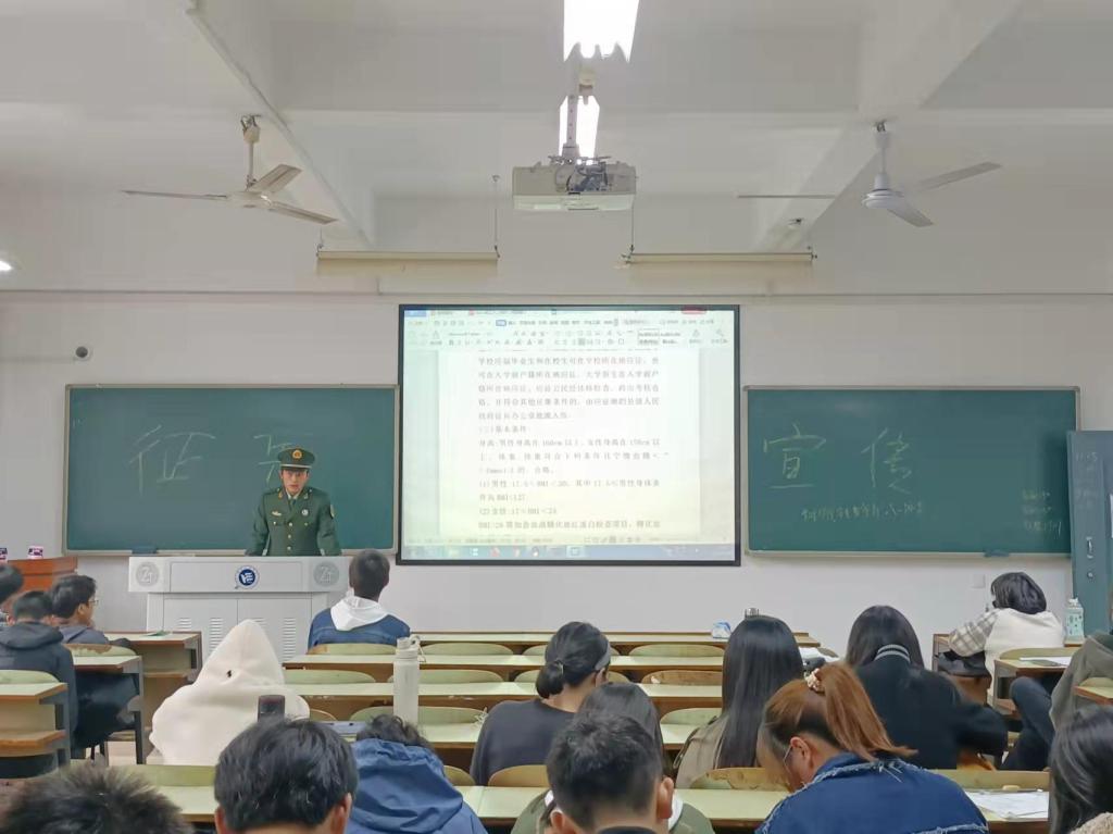 本次征兵宣传利用班会的形式,强化同学们服兵役的责任感和参军保卫祖国意识,能够加强同学们对部队军事、科技素质建设的认识,促进老员工从成长成才的角度来认识老员工入伍的重要意义。