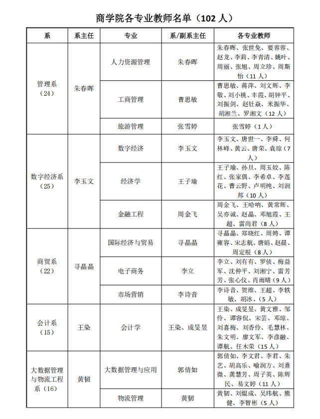 各专业负责人及专业教师名单
